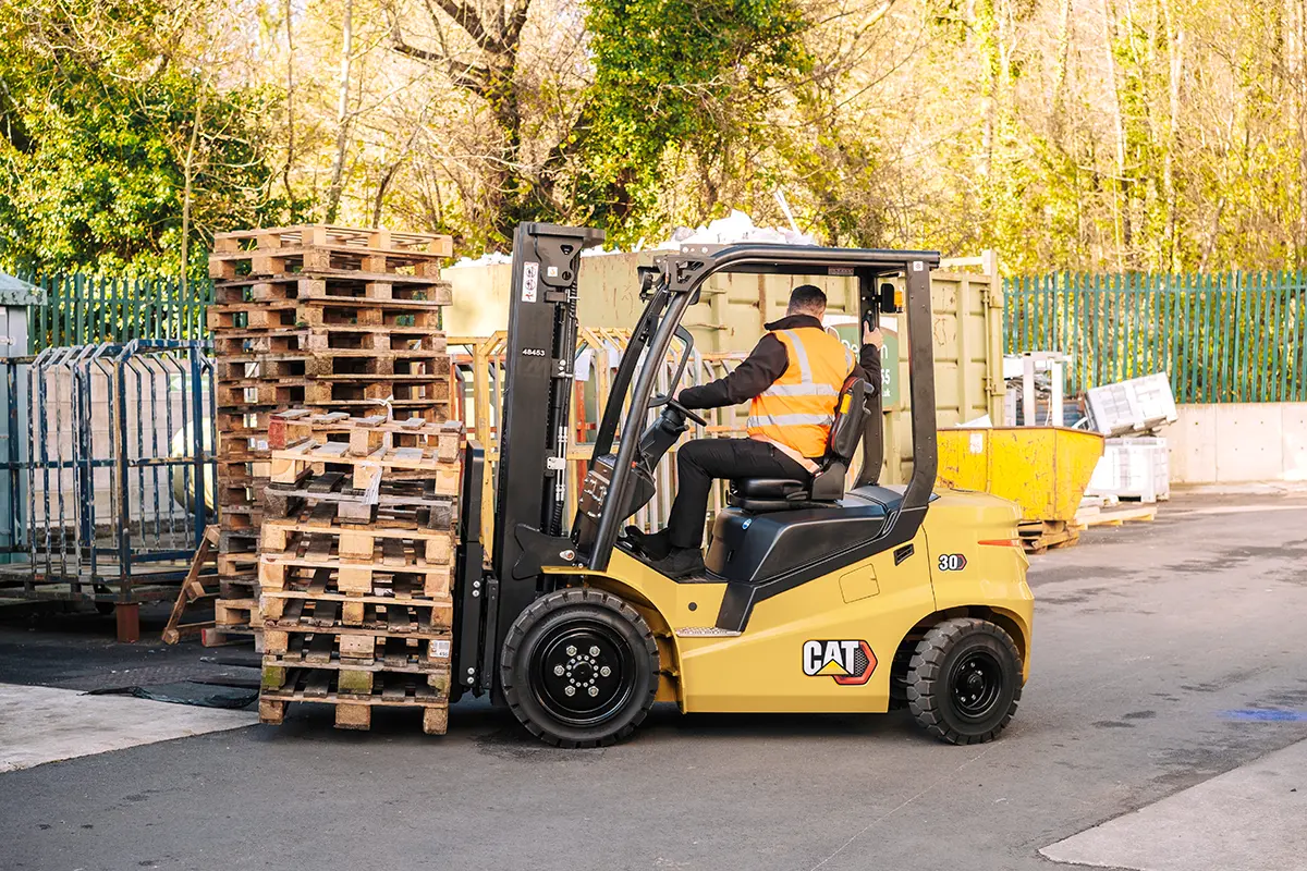 The CAT ECB25-35Q electric forklift range blends rugged, diesel-style build quality with the advantages of clean electric power. Designed for tough outdoor environments, these trucks feature high ground clearance and large industrial wheels, making them ideal for yards and uneven surfaces where durability and stability are essential.